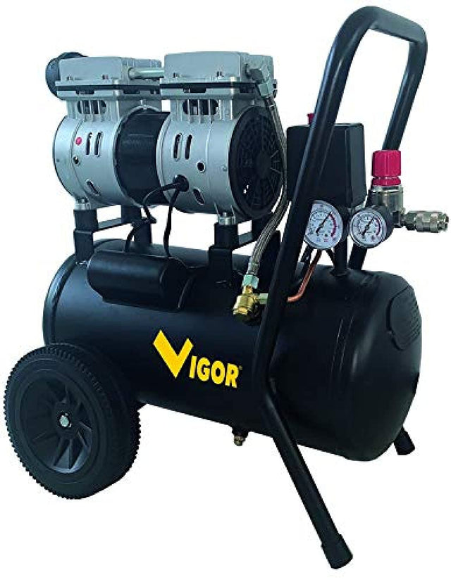 Detalles: Compresores vigor Silent 230 V vca-s24 2 cil/de 1 hp transmisión directa 230 V motor 0,75 kW inducción 2 cilindros - depósito 24 l rid.pres. 8 bar ruidoso 79 db aire aspirado 160 l/min 24 l.