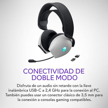 Alienware Dual Mode Wireless Gaming Headset - AW720H (Lunar Light)