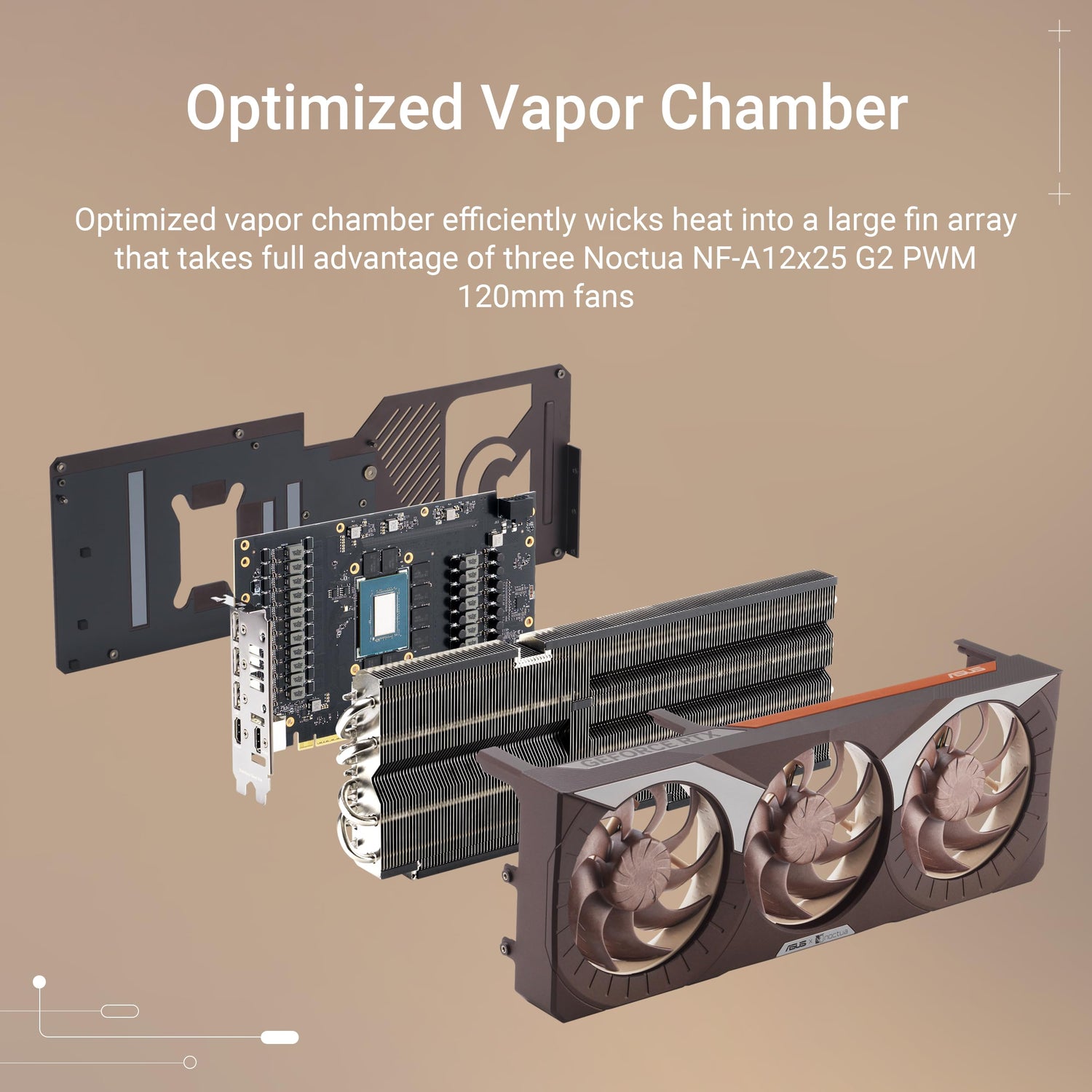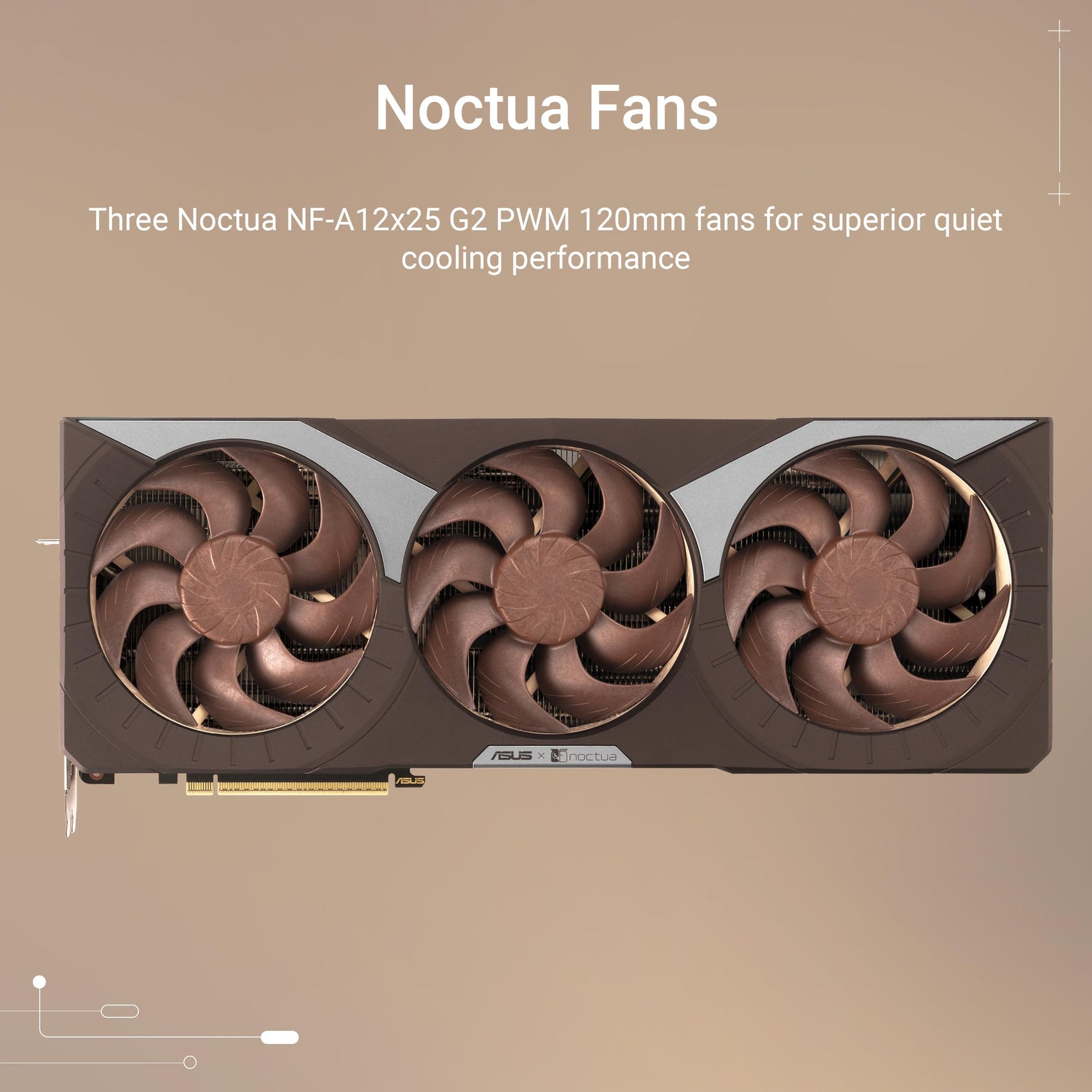 - Tres ventiladores Noctua NF-A12x25 G2 de 120 mm para un rendimiento de refrigeración extremadamente silencioso
