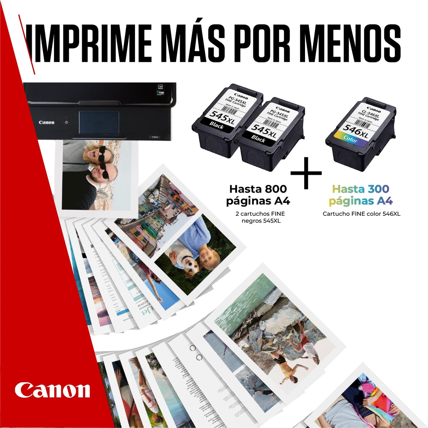 • TINTA CANON: El pack ahorro incluye un cartucho de tinta para imprimir hasta 400 documentos A4 en negro y 300 documentos A4 en color. La tinta original de Canon ofrece una calidad de impresión constante el 100 % de las veces.*