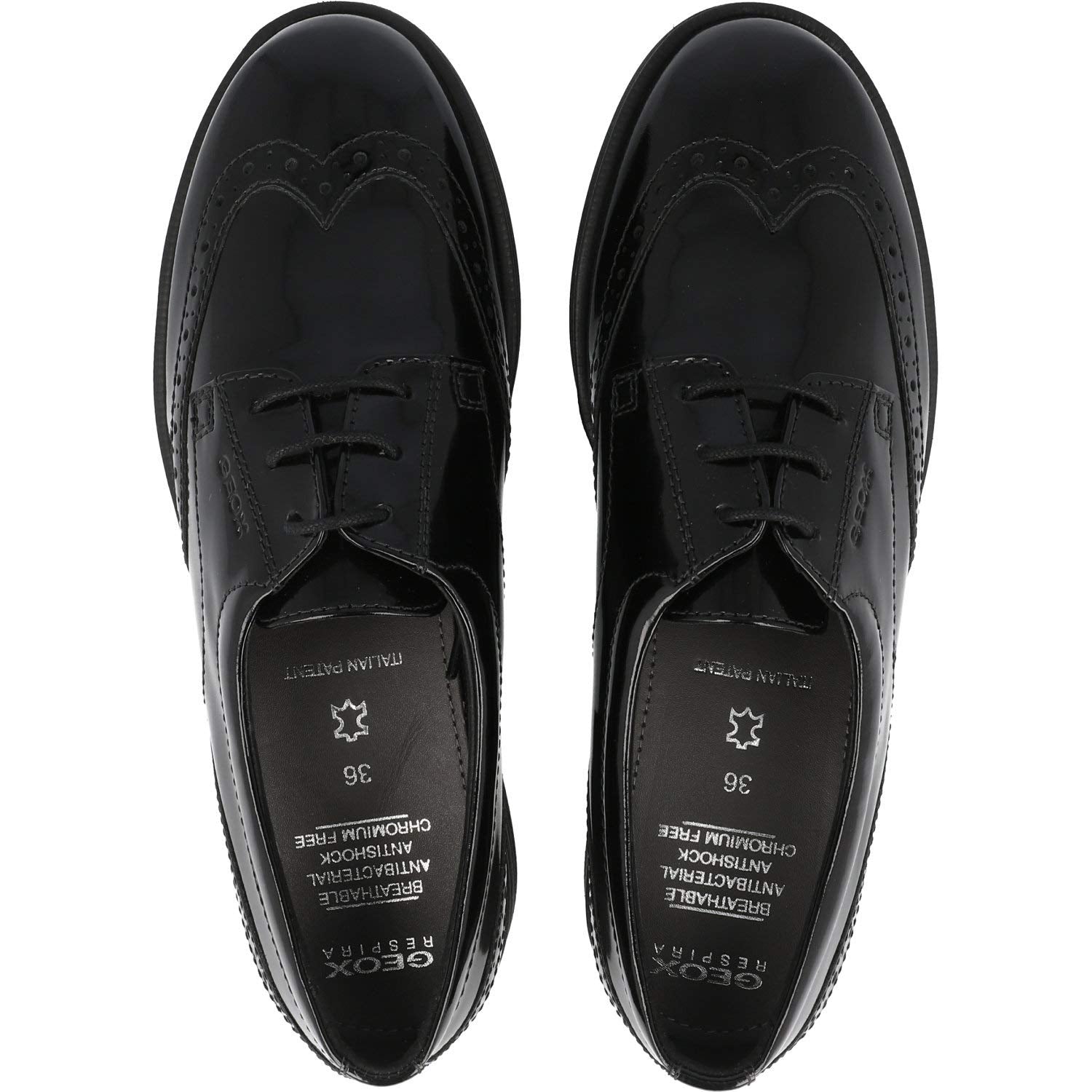 Agata es un zapato de niña realizado en charol y decorado por elegantes detalles brogue. óptimo para todos los días, tiene un aspecto formal que se combina perfectamente con el uniforme escolar. - Los sistemas patentados Geox garantizan la transpirabilidad de la suela y el bienestar del pie. - Plantilla antibacteriana. - Plantilla de piel atóxica sin cromo. - Calce fácil de regular gracias al cierre con cordones. - Plantilla desmontable.