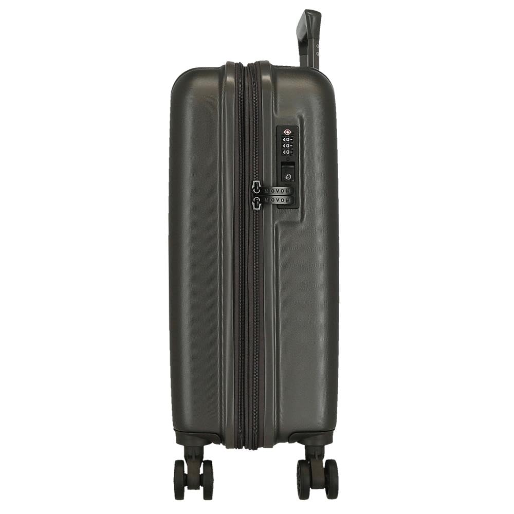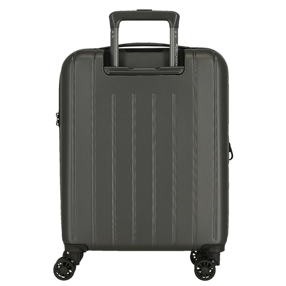 - Maleta de cabina de 40 cm x 55 cm x 20 cm (ruedas y asa incluida). Tiene una capacidad de 37 L y pesa 2,8 kg. Fabricada en ABS, un material resistente y ligero.