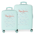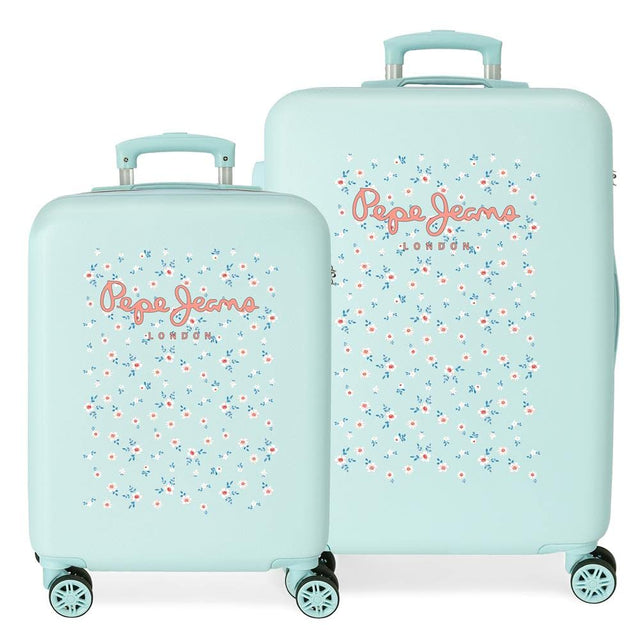 Pepe Jeans Niñas Leslie Juego de Maletas, Rígida, ABS, Cierre de combinación Lateral, 90 L, 7.54 kg, 4 Ruedas Dobles Equipaje de Mano, Azul, 55/65 cm