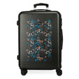 - Maleta de 65 cm x 46 cm x 23 cm (ruedas y asa incluida). Tiene una capacidad de 56L y pesa 3,1 kg. Fabricada en ABS, un material rígido y ligero.