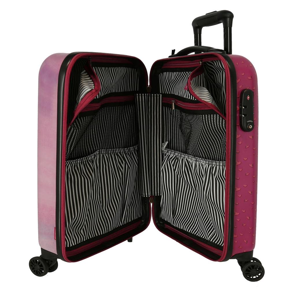 Con mucho amor y ternura, en esta colección llena de corazones, la muñeca Gorjuss quiere acompañarte ya sea de viaje con las maletas y los neceseres, o las mochilas, bandoleras, bolsa de viaje, o maletin portaordenador. La colección de maletas en ABS, con cuatro ruedas de giro multidireccional para desplazarlas fácilmente y cuentan con cierre TSA para proteger tus efectos personales. Llevan dos compartimentos con cremallera a cada lado y en sus bolsillos interiores y con la bolsa de tela incluida podrás organizar mejor todo lo que necesitas para tu viaje. Además si quieres un complemento a juego, tienes el neceser con banda trasera para adaptarlo a la maleta y viajes siempre acompañada de la adorable Gorjuss.