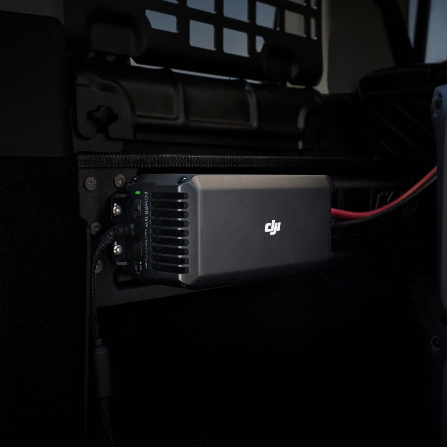 - Durante tu viaje, el cargador superrápido de coche de 1 kW DJI Power puede usar el exceso de electricidad del alternador del coche para recargar rápidamente DJI Power 1000/2000/1000 V2. Puede alcanzar 1024 Wh de energía durante una conducción de aproximadamente 78 minutos, y 2048 Wh en 145 minutos.
