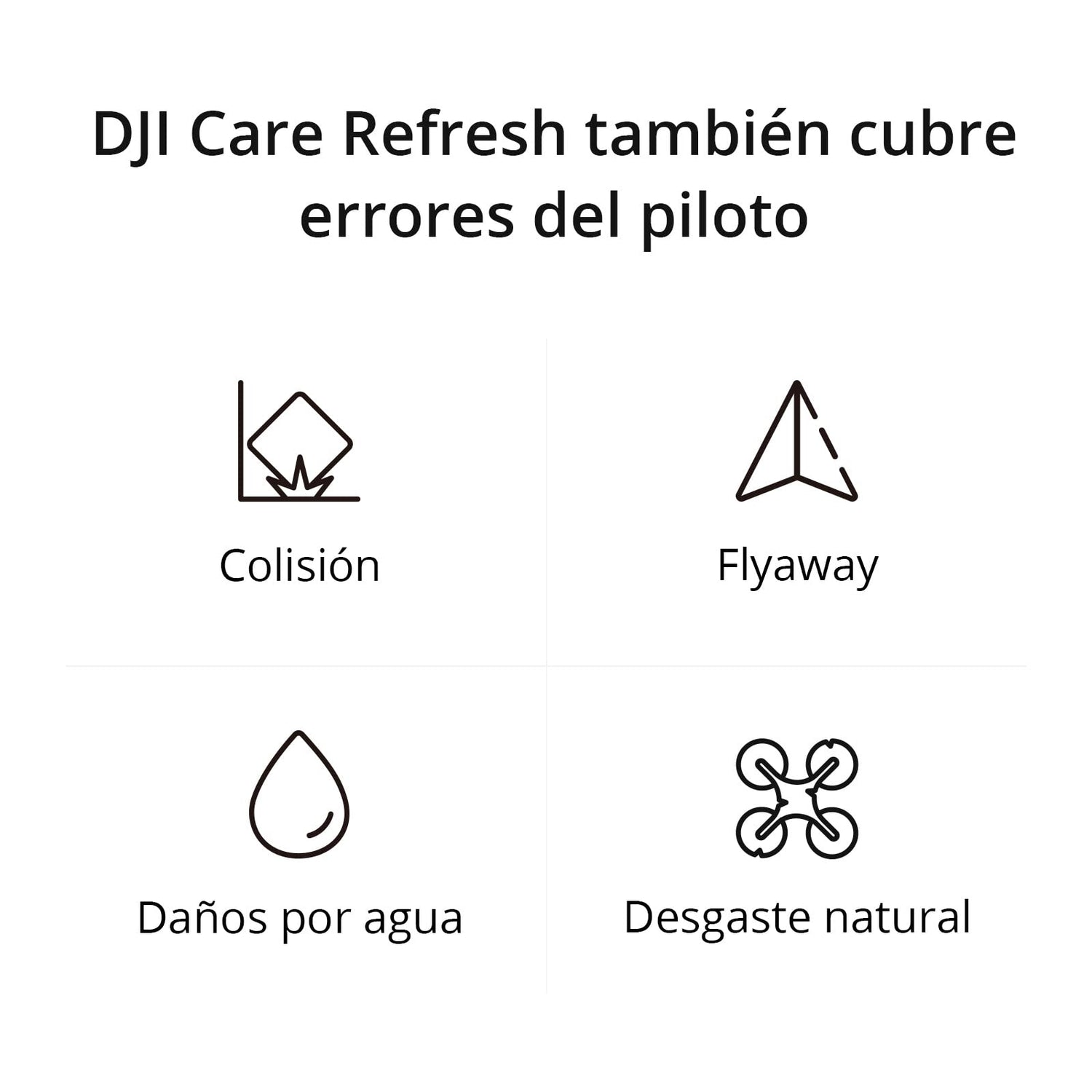 - Garantía oficial: Durante el periodo de servicio de DJI Care Refresh, las piezas principales se mantienen cubiertas por la garantía oficial, para ofrecerte una protección más larga para tu producto.