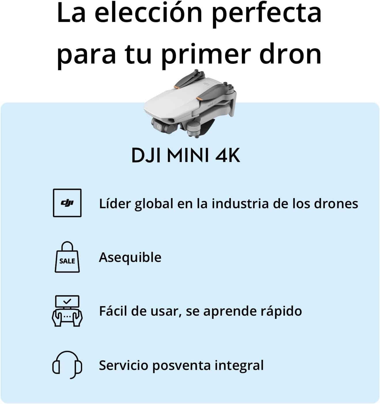 DJI Mini 4K, dron con cámara 4K UHD para adultos, menos de 249g, estabilización en 3 ejes, transmisión de vídeo a 10 km, regreso automático, 1 batería para un tiempo máx. de vuelo de 31 min