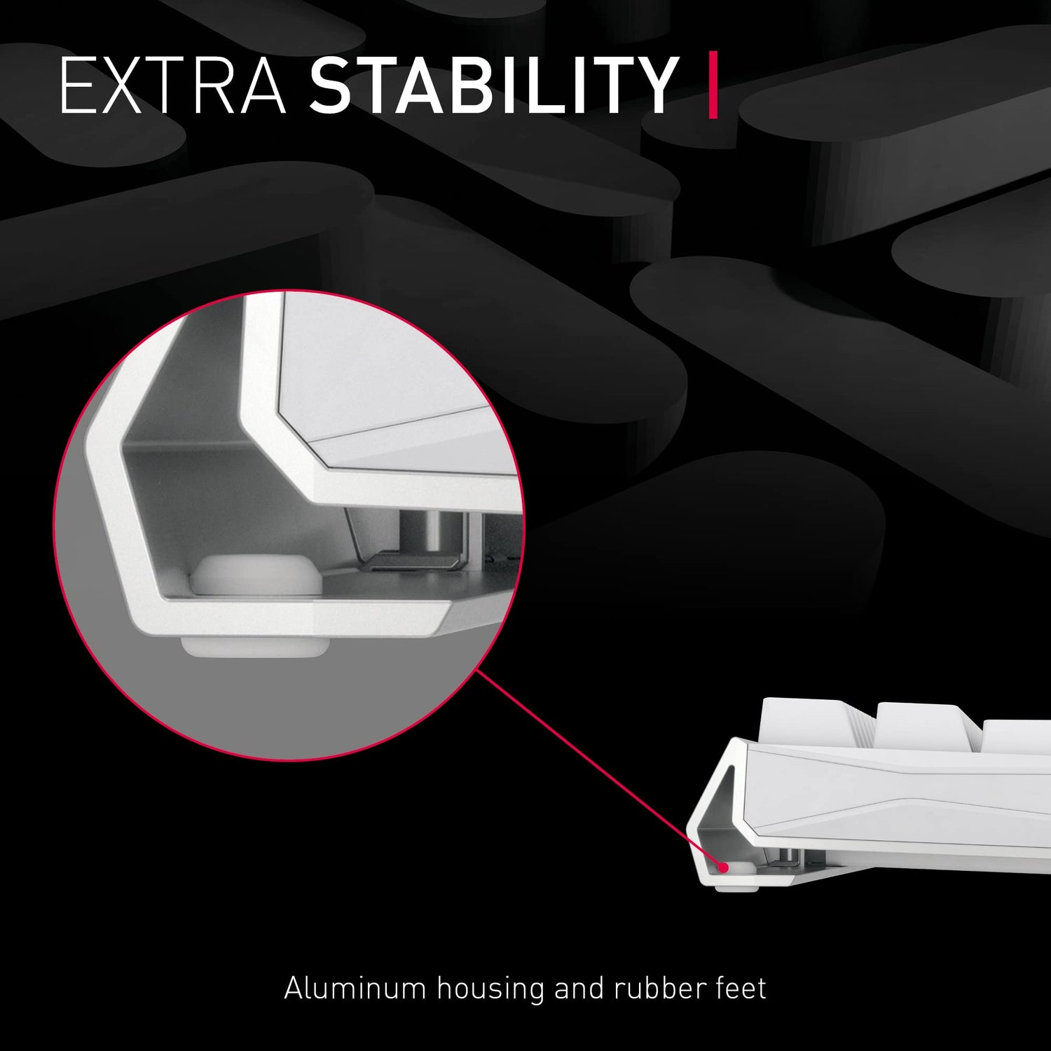 - Switches mecánicos CHERRY MX2A RED de alta calidad: Sensación de tecleo suave y directa con características de conmutación lineales (sin clic) y más de 100 millones de accionamientos por tecla