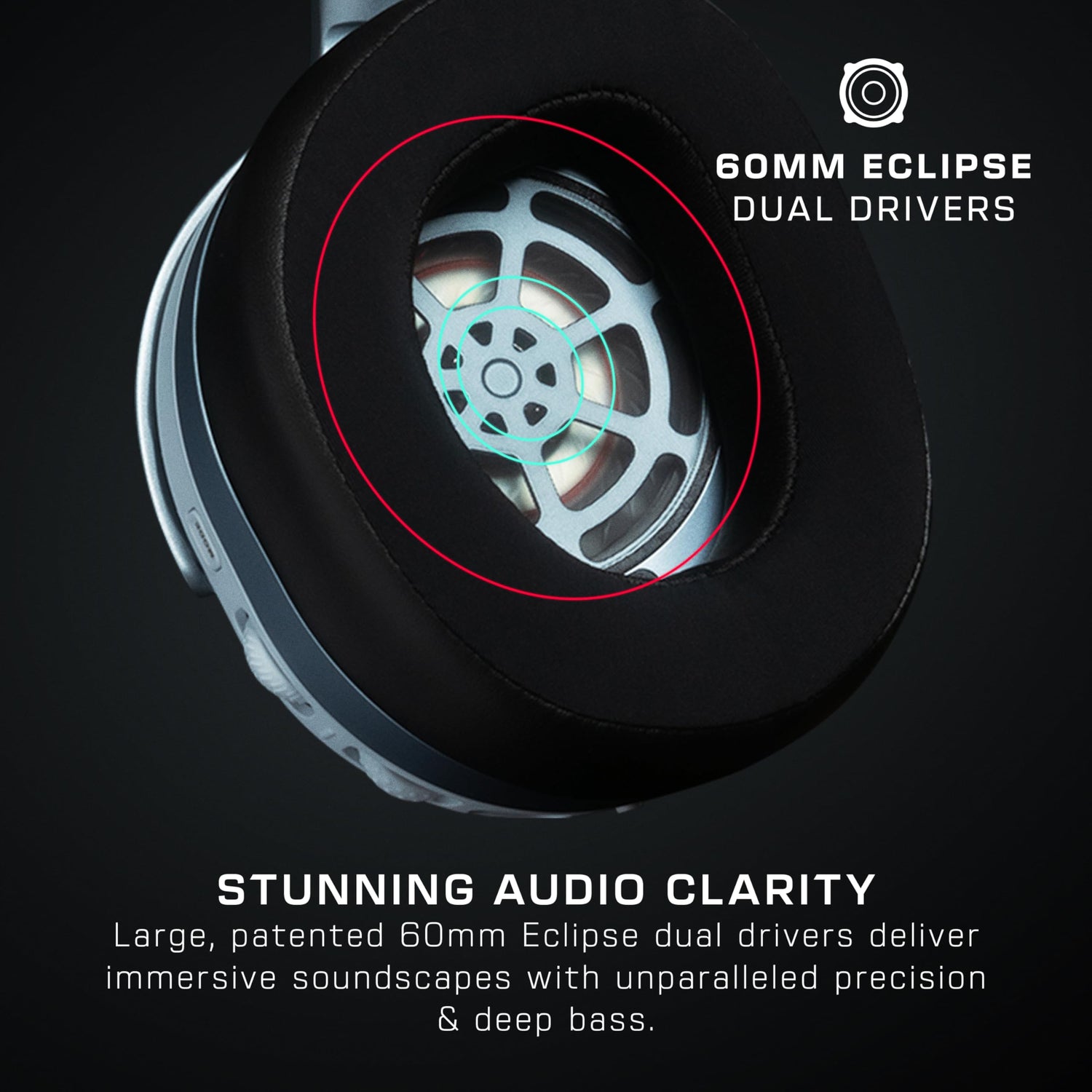 - Claridad de audio asombrosa - Nuestros transductores duales patentados de 60 mm Eclipse, los más grandes de su clase, ofrecen paisajes sonoros envolventes con una precisión y una profundidad de graves inigualables. Los transductores duales están diseñados con un woofer y un tweeter independientes para separar las frecuencias bajas de las altas y mejorar enormemente el nivel de detalle del sonido con respecto a los transductores convencionales.