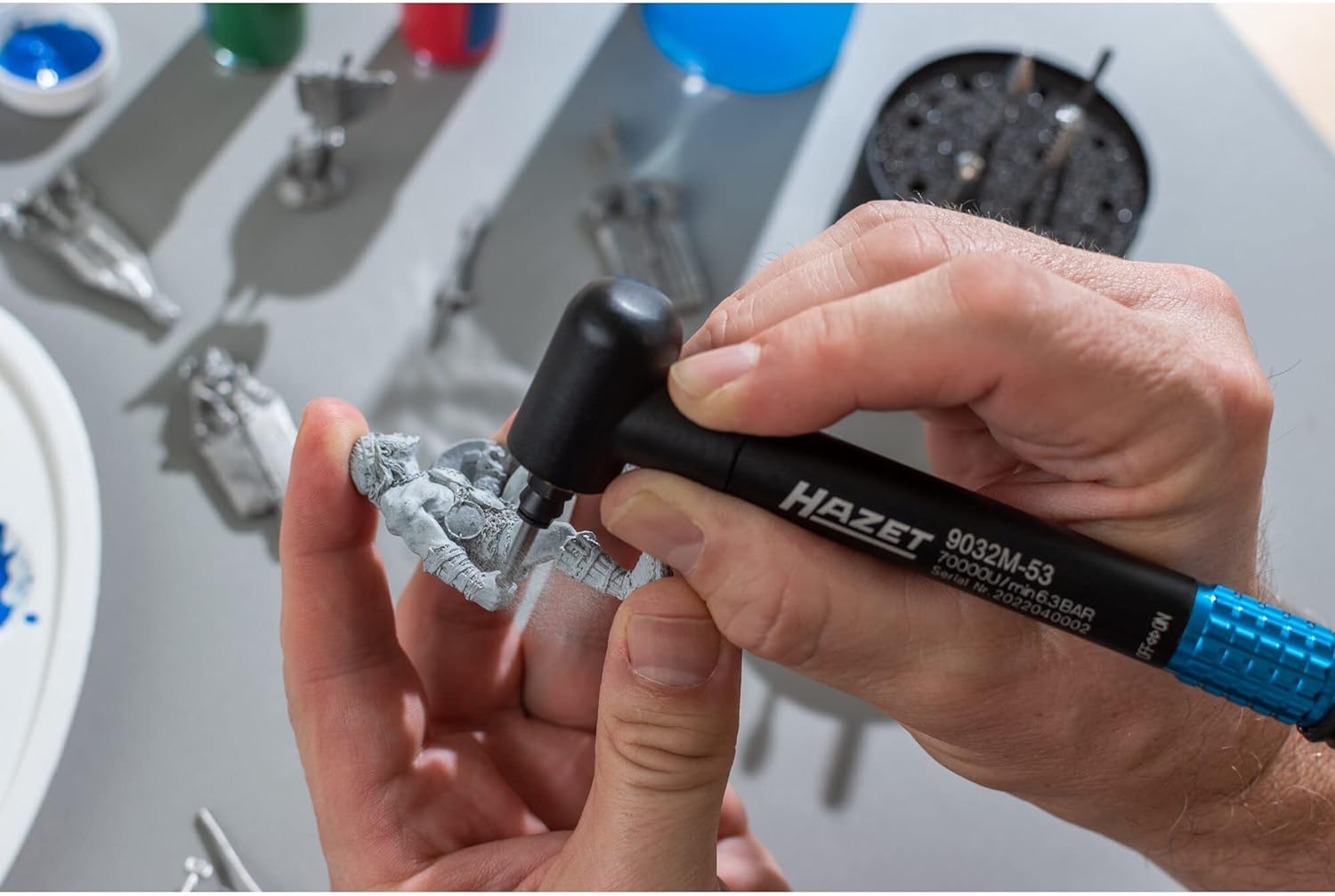 - Volumen de suministro: 1x amoladora de banco HAZET 9032M-53 I incl. enchufe de acoplamiento: anchura nominal 7,2 mm, rosca interior: 12,91 mm, potencia: 186,4 vatios, presión de funcionamiento: 6,3 bar I longitud: 140 mm, peso: 0,23 kg".