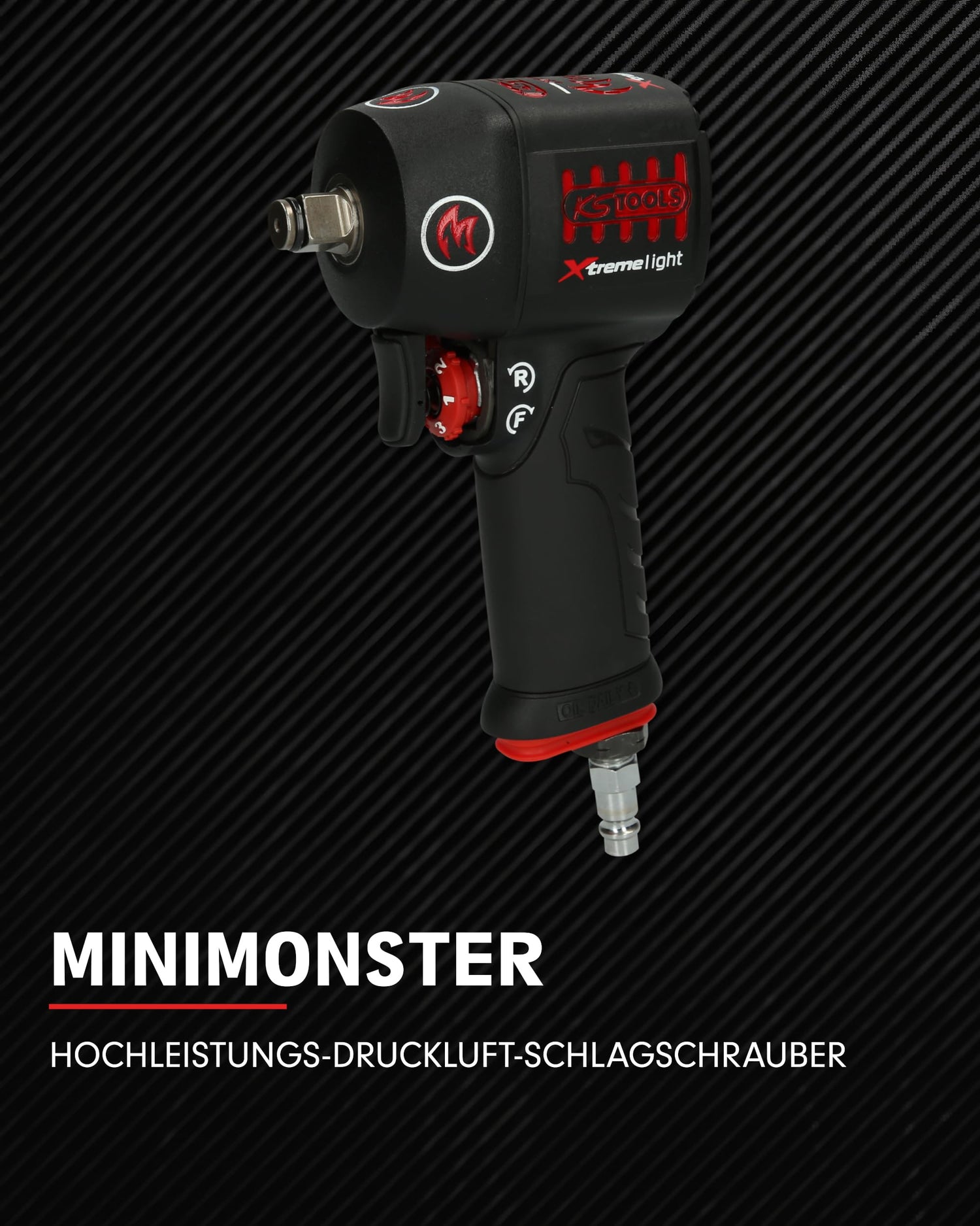 KS Tools 515.1150 1/2" Atornillador de impacto neumático de alta potencia miniMONSTER Xtremelight con 1.390 Nm
