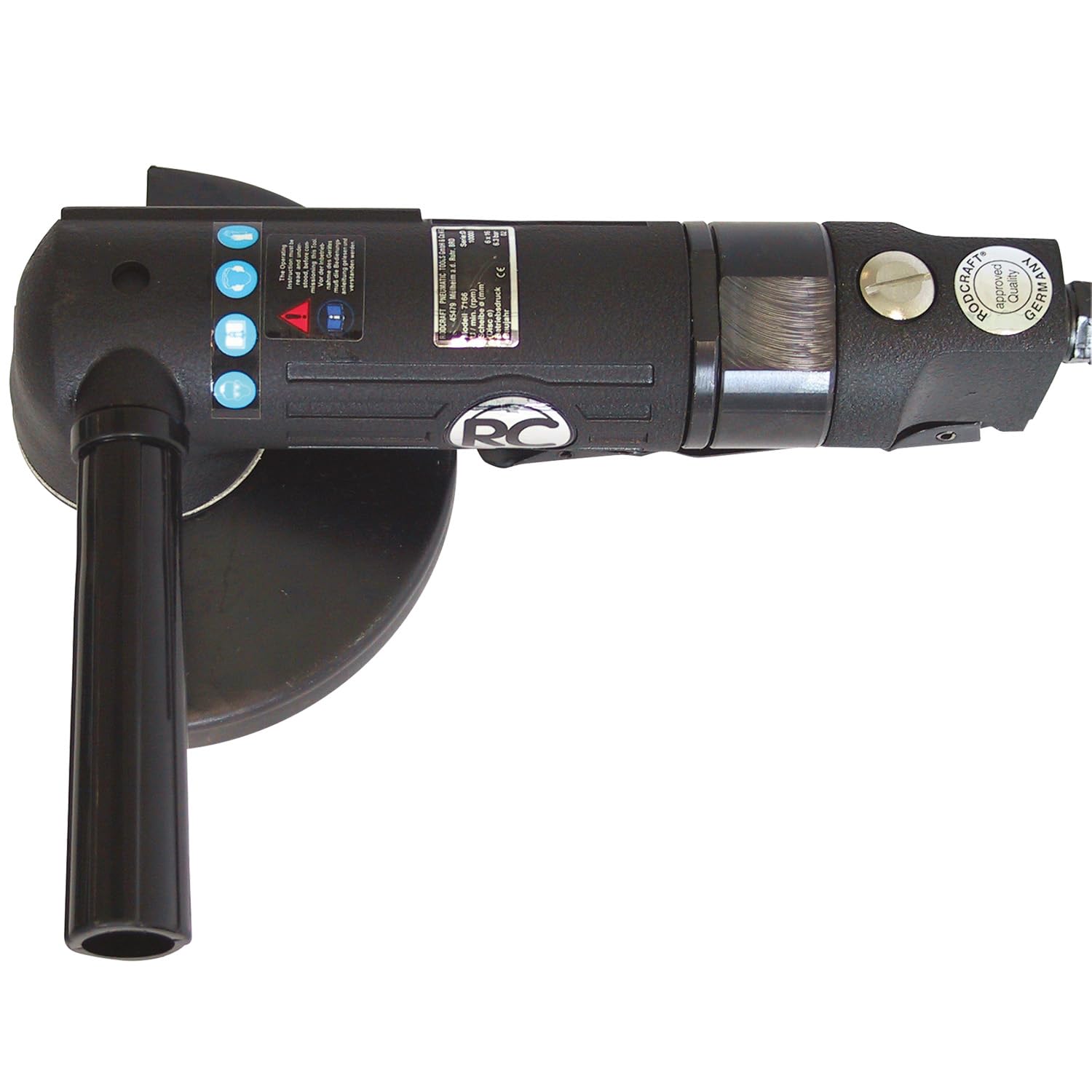 Detalles: 'Información del producto "Rodcraft - Amoladora angular (7166 - " Rodcraft amoladora de ángulo modelo 7166 - - mano de amoladora de ángulo para separar y schruppen. compacto, tamaño pequeño tamaño accesorio: bridas para discos de 1 mm de grosor (sólo modelo 7166 - ) para discos de 115 y 125 x 22 mm, husillo M14 x 2 AG incluye sábana bajera ajustable brida datos técnicos: Tamaño de los platos 115 mm x 22 mm y 125 mm x 22 mm Potencia 750 W Velocidad de 10.000 U/min Peso 1,6 Kg manguera 8 mm de diámetro, presión máx. 6,3 bar consumo de aire diámetro orbital 490 L/min Consumo de aire kontin. 650 l/min de aire Conector 1/4 IG nivel 82,3 LpA vibración 2,5 m/s² Nivel 2 - Mayor exigencias