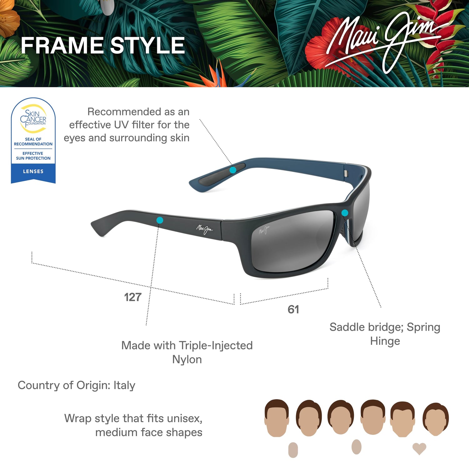 - MAUI JIM, SUNGLASSES MJ0766S Kanaio Coast, Matte Soft Black/White/Blue, 61-16-130, Rectangle