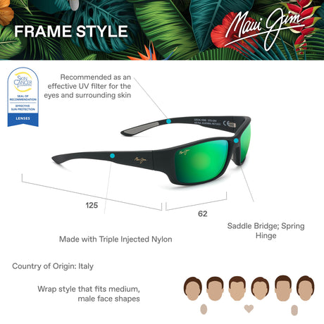 Maui Jim Local Kine Gafas, Black/Tran Green/Lt Trans Grey, 62-15-125 Unisex Adulto