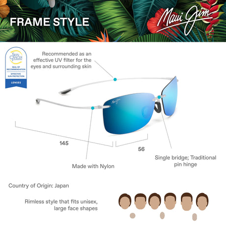 Maui Jim Huelo Gafas, Blue, 58-16-135 Unisex Adulto