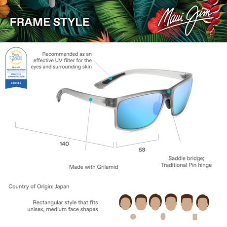 Maui Jim Hookipa Gafas, Smoke Grey, 1 Unidad (Paquete de 1) Unisex Adulto