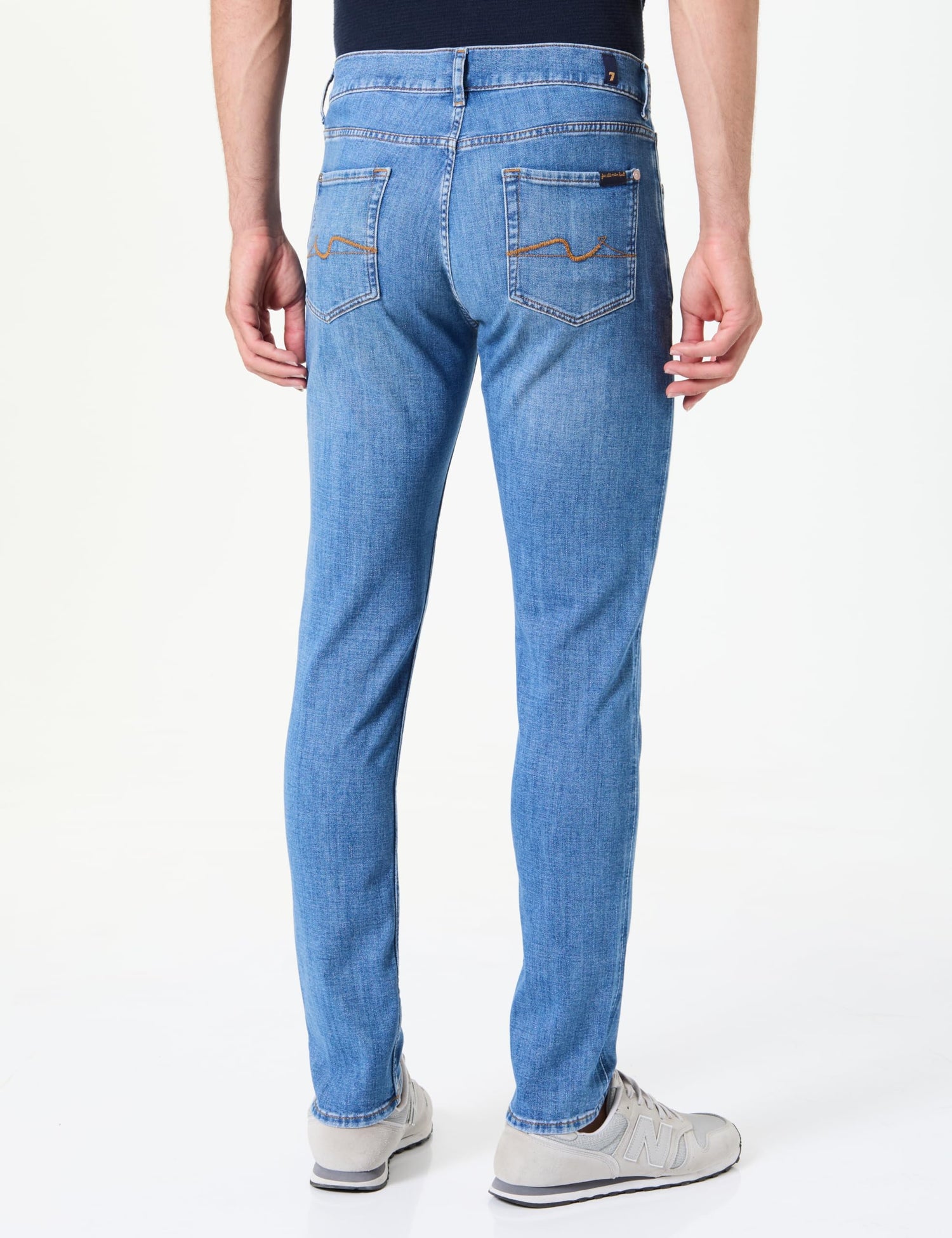 7 For All Mankind Slimmy Tapered Jazz Age Jeans, Mediados Azul, 30 W Hombres