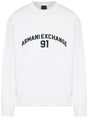 Armani Exchange Men's 91 Logo Crew Neck, Wrist Cuffs,Sweatshirt,Off White,S, Blanco Crudo, S