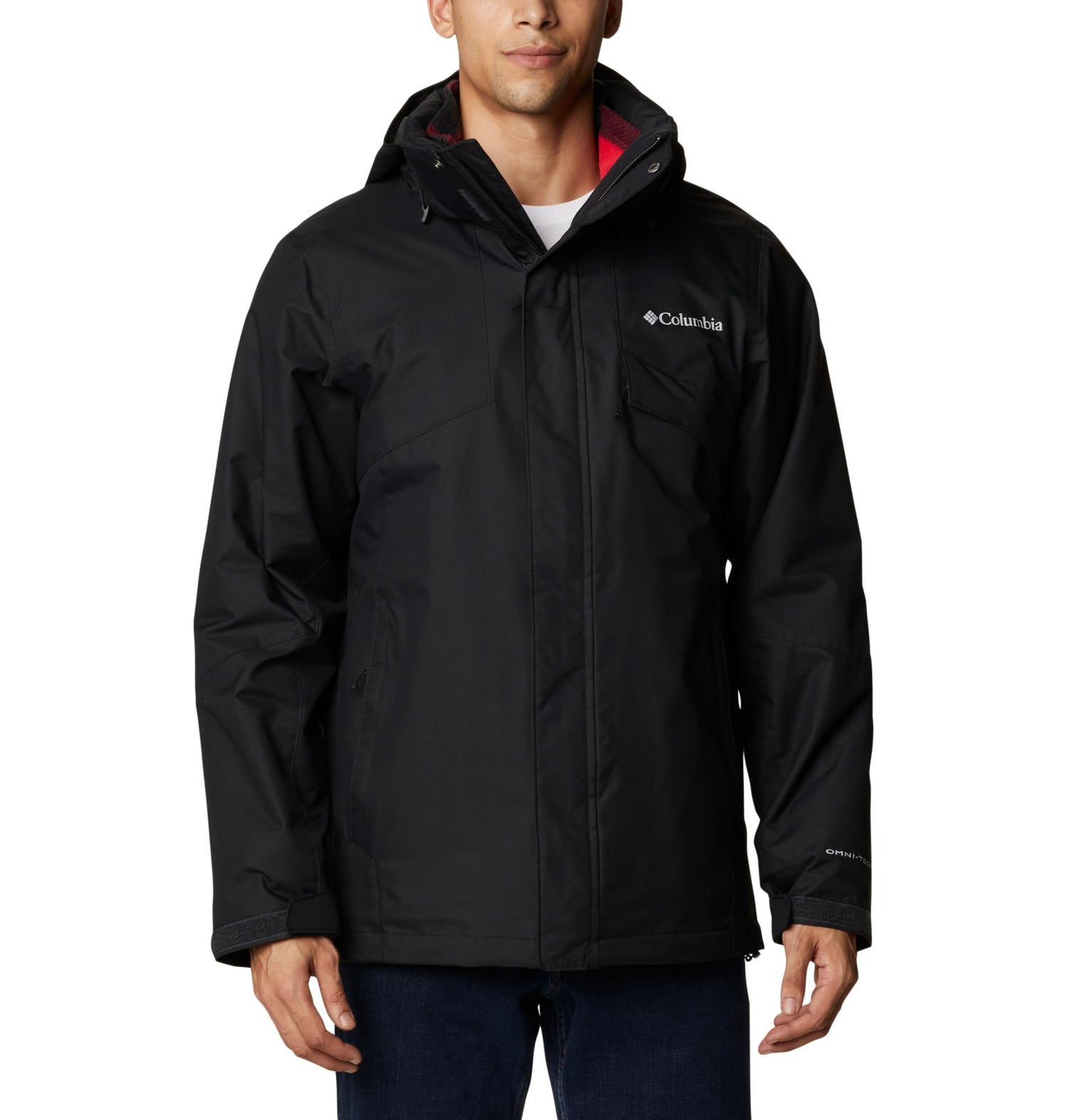 Chaqueta impermeable de doble capa para hombre, adecuado para días fríos y lluviosos de invierno en la ciudad, senderismo y otras actividades al aire libre, Ajuste moderno. Resistente al viento y al agua, extremadamente transpirable y repelente al agua gracias a las costuras totalmente selladas con tecnología Omni-Tech, Especialmente cálido gracias a la tecnología Omni-Heat con revestimiento termorreflectante. Práctica cremallera de cuerpo entero, Bolsillos con cremallera para manos cálidas y protegidas. Ajuste óptimo gracias a los puños ajustables y el cordón ceñidor en el dobladillo, Capucha de tormenta ajustable extraíble. Contenido: 1x Columbia Chaqueta impermeable para hombre, Bugaboo II Fleece Interchange Jacket, Material: 100% Nailon, 1800662.