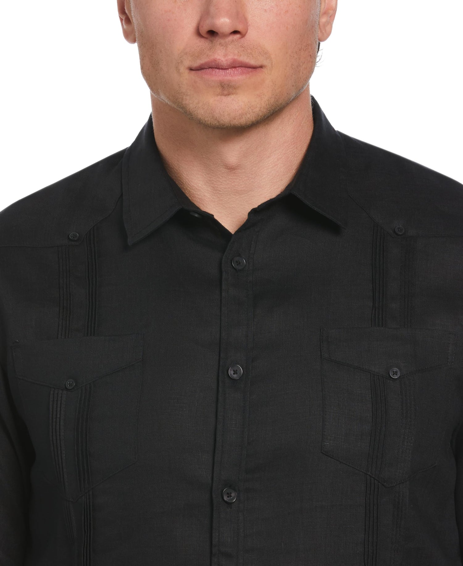 Cubavera - Camiseta de Manga Larga para Hombre (100% Lino), diseño de Guayabera - Negro - 3X-Large Tall