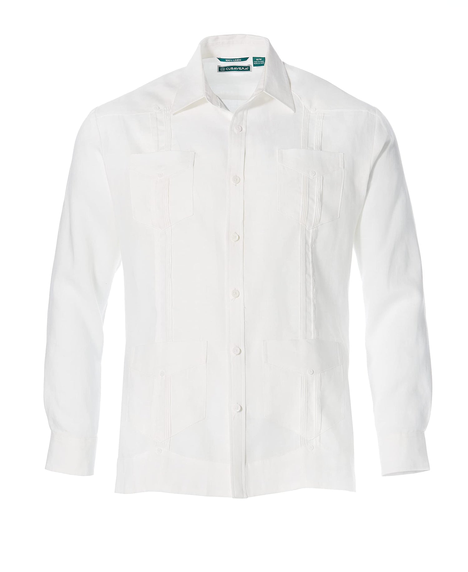Cubavera Hombre Manga Larga 100% Lino Guayabera - blanco - X-Large
