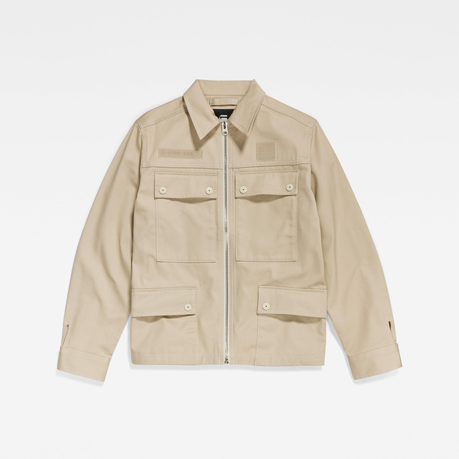 La chaqueta 4 Pocket Zip tiene un corte recto y un detalle fruncido en la parte trasera de la cintura que aporta volumen. Las mangas están rematadas con puños ajustables. Esta chaqueta con cierre de cremallera incluye bolsillos de solapa con cierre de botón a presión en el pecho y en la cintura. Los parches de velcro que lleva encima tienen un estampado gráfico a un lado.