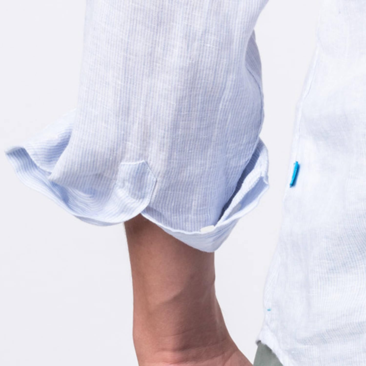 La camisa polera de lino con rayas SAMUI aporta un look muy fresco. Nos encanta como un estilo casual único, más elegante que un polo pero más relajado que una camisa normal. Es el atuendo perfecto para ir de la playa a la ciudad con un auténtico estilo veraniego.
