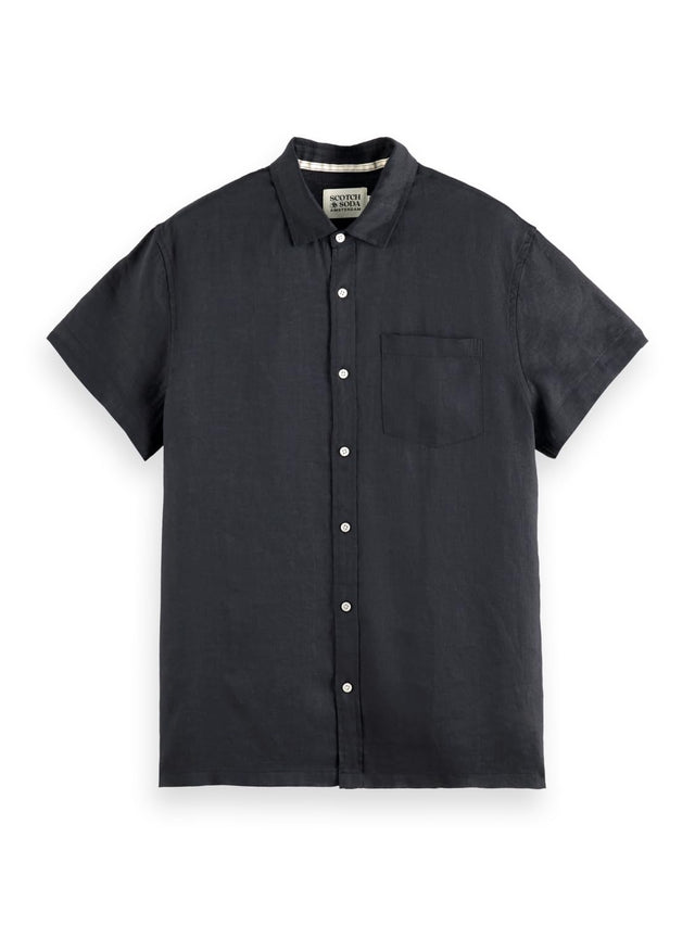 Scotch & Soda Linen SS Shirt, Camiseta Hombre, Negro, L