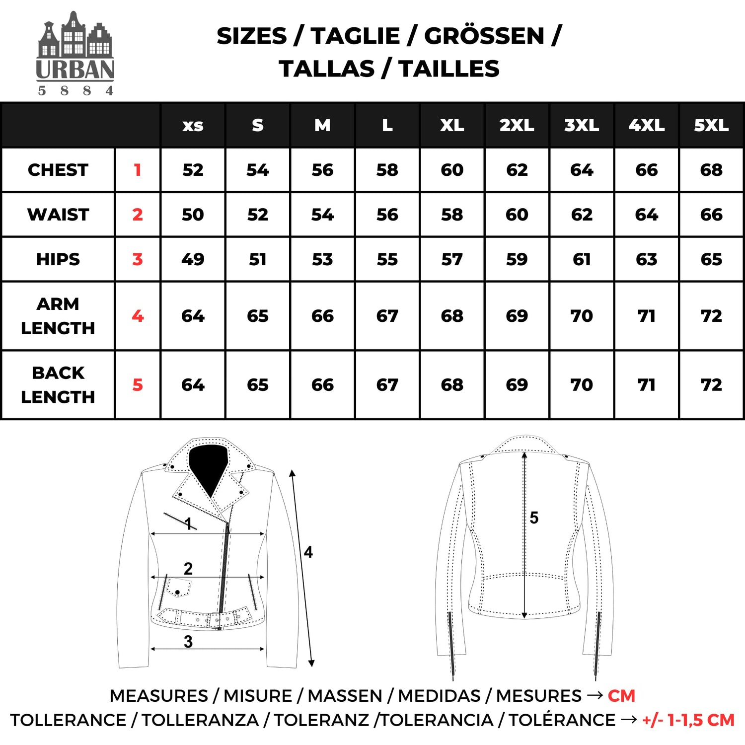 • ELECCIÓN DE LA TALLA: Nuestra chaqueta de cuero para hombre tiene un ajuste ceñido, por lo que te recomendamos una talla superior a la que utilizarías normalmente. Consulta la tabla de tallas antes de proceder a la compra.