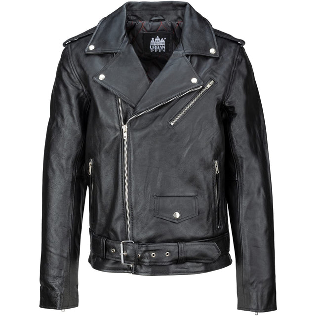 URBAN 5884 Chaqueta de Cuero para Hombre Perfecto, Suave y Duradera Chaqueta de Cuero Genuino, Estilo Motero, Negro, 3XL