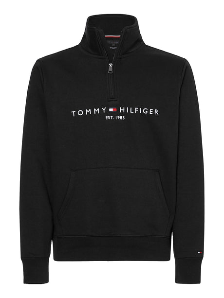 Tommy Hilfiger Hombre Sudadera con Cremallera Mockneck con Media Cremallera, Negro (Black), M
