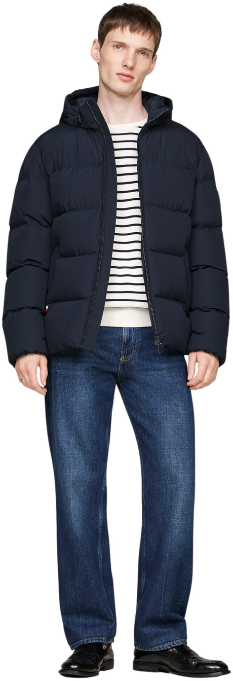 Tommy Hilfiger Cazadora Acolchada Hombre Down Hooded Puffer Jacket con Capucha, Azul (Desert Sky), S