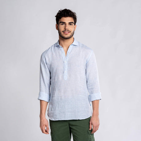 Panareha Camisa Polera Hombre Lino MAMANUCA Azul Claro (L)
