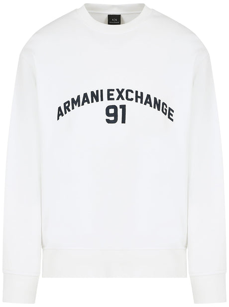 Armani Exchange Men's 91 Logo Crew Neck, Wrist Cuffs,Sweatshirt,Off White,S, Blanco Crudo, S