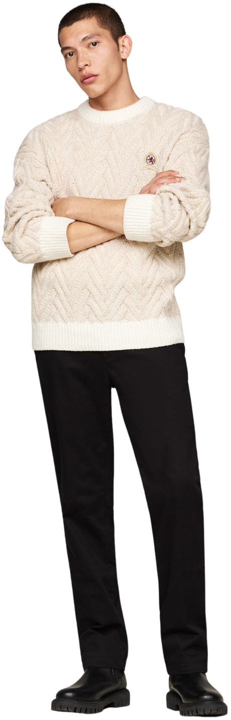 Tommy Jeans Jersey Hombre Cable Knit Sweater con Punto Trenzado, Rojo (Red Wine Tonal), S