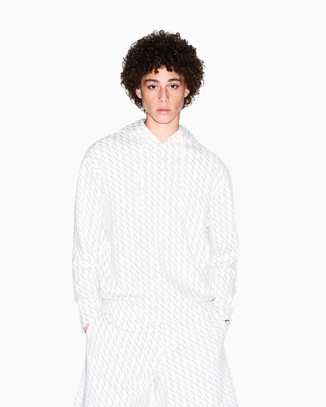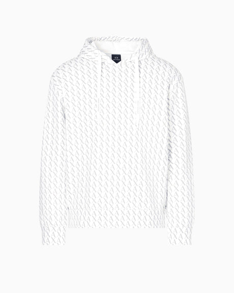 Armani Exchange Essential, All Over Logo Sudadera con Capucha, Off White/Ash Allover, L para Hombre