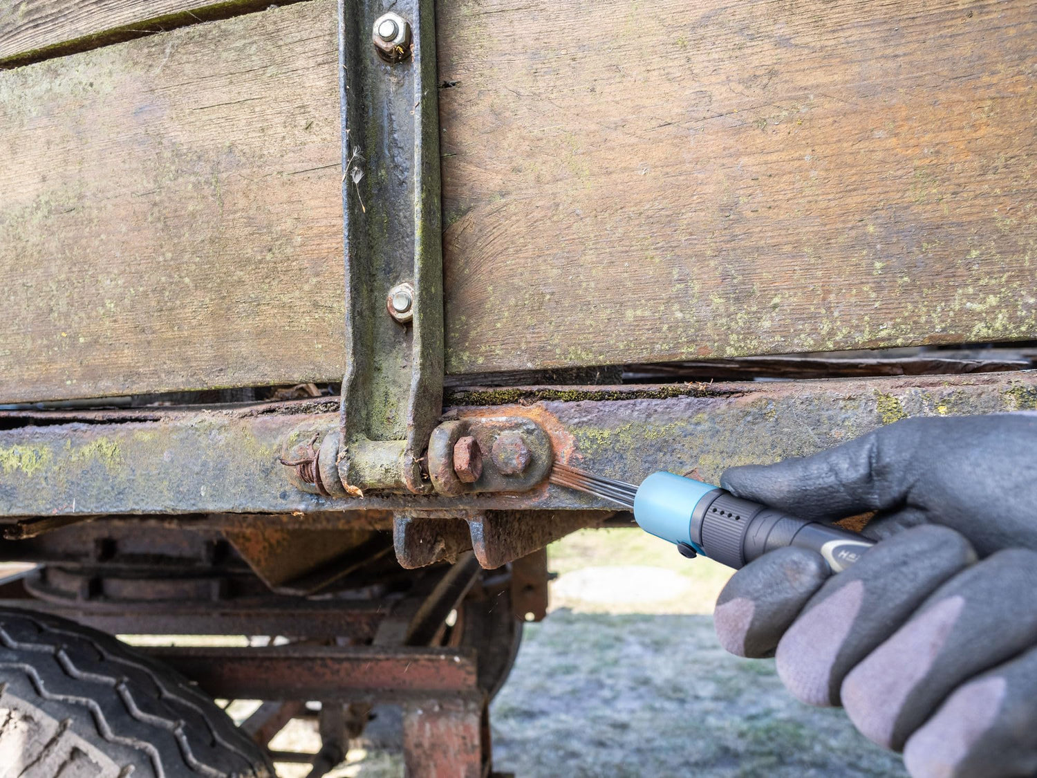 - SUAVE: para limpiar piezas sucias y oxidadas, especialmente sistemas de frenos, procesamiento sin daños gracias a las 13 finas agujas de acero inoxidable