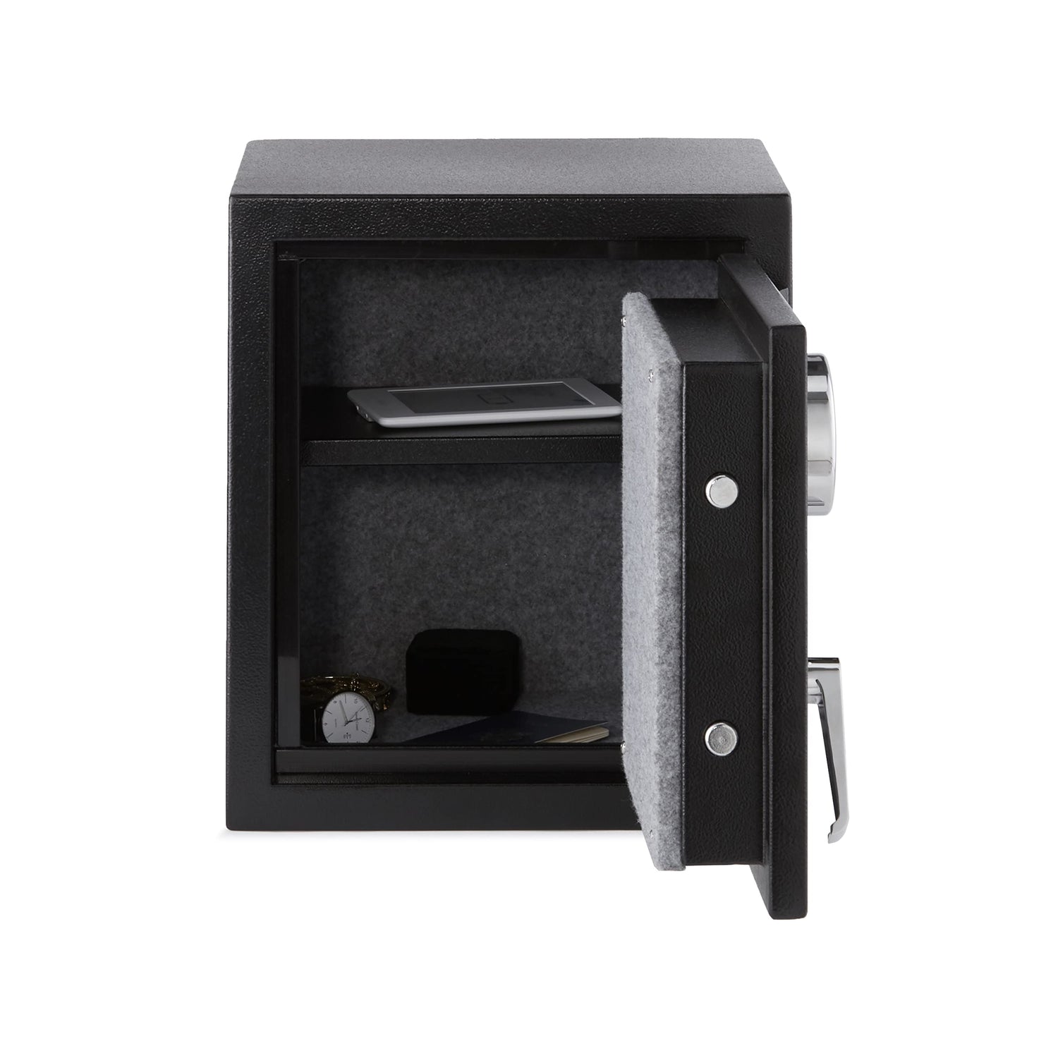 - Caja fuerte ignífuga de 23.5 litros para proteger aparatos digitales, documentos importantes y otros objetos de valor frente a robos e incendios