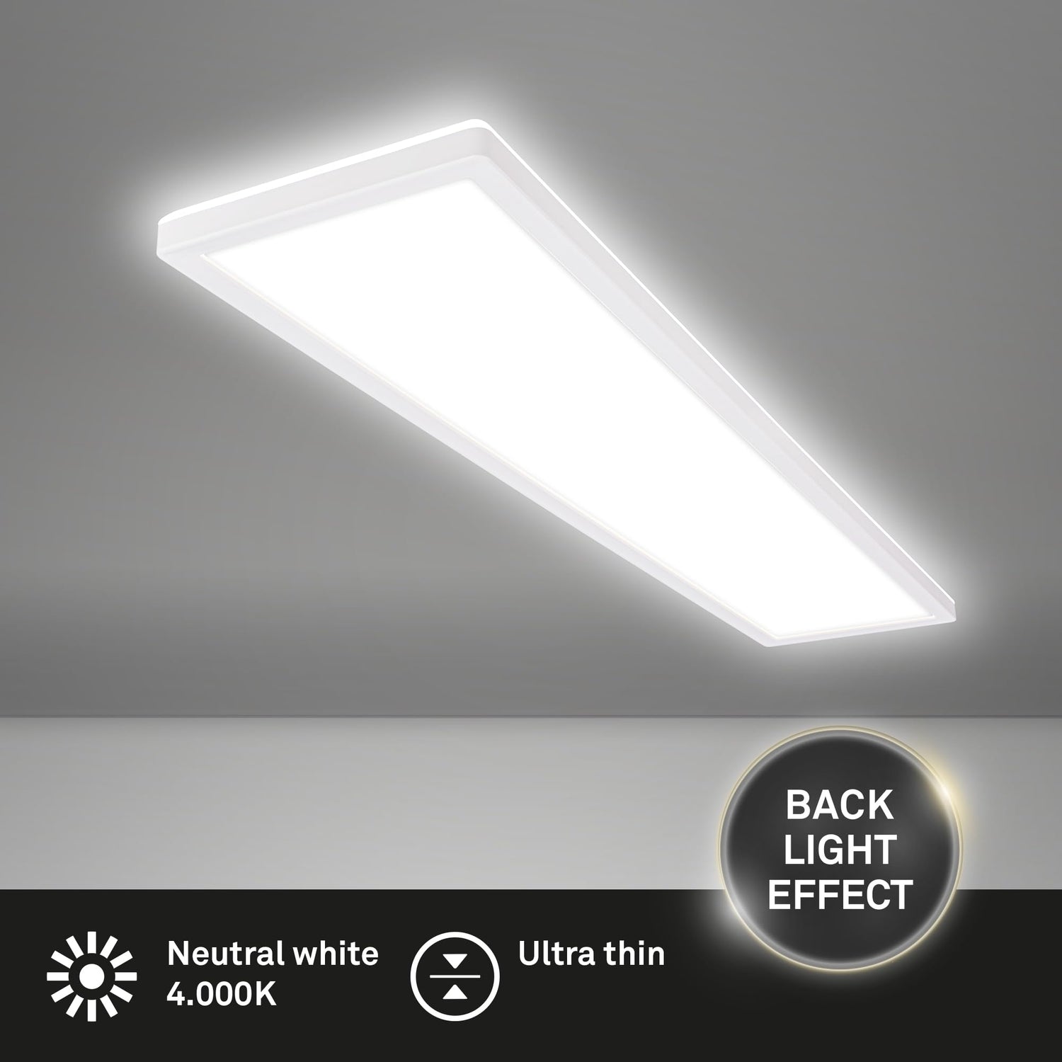 BRILONER - Plafón LED, Panel LED, Ultra Plano, Efecto Retroiluminación, Luz Blanca Neutra, 36W, 4800 Lúm, Luces Habitacion, Rectangular, Cocina, Luz, 98x20 cm, Blanco