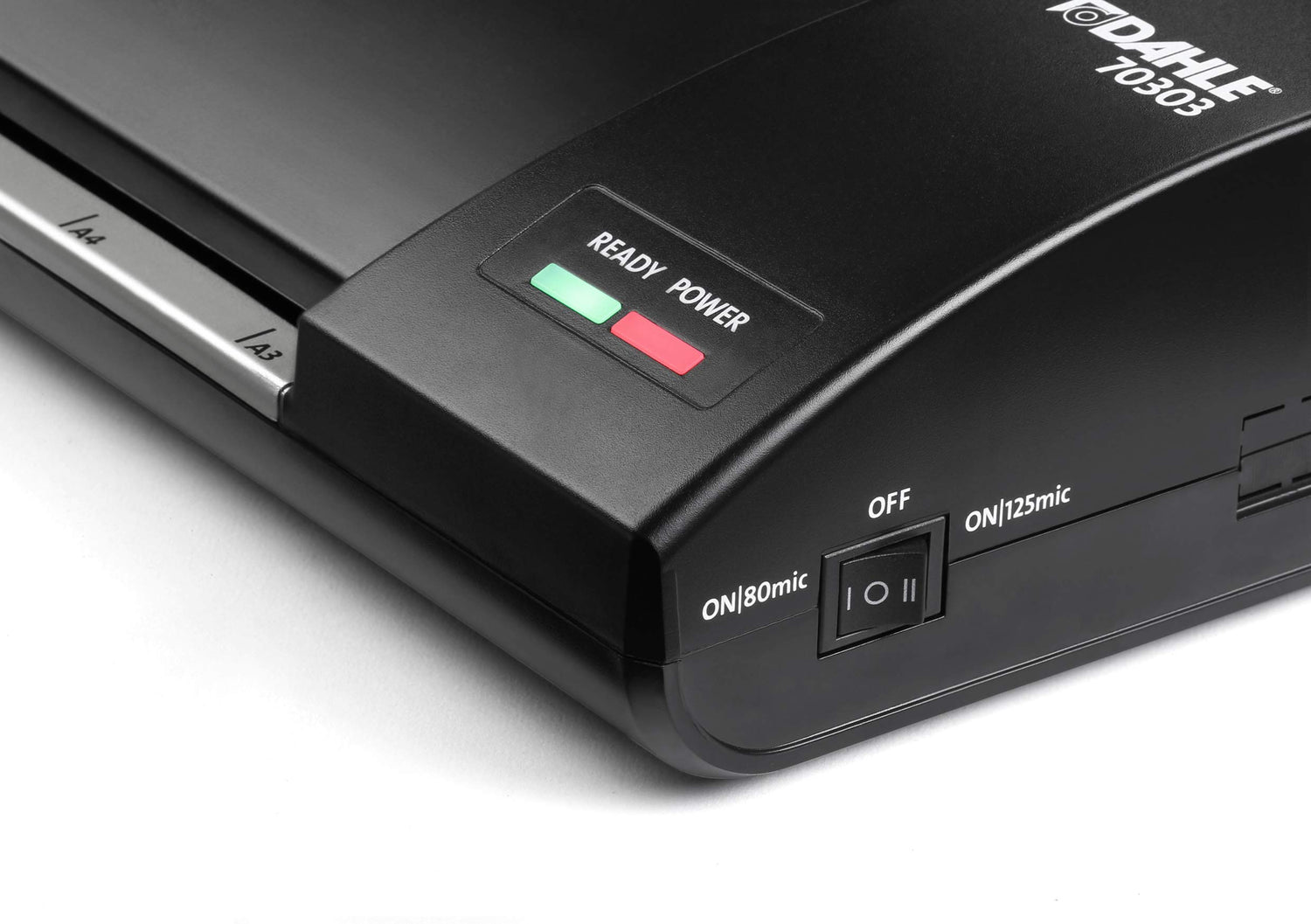 Dahle 70303 - Plastificadora (hasta A3, laminación en frío y caliente, 40 segundos) tiempo de calentamiento), color negro.