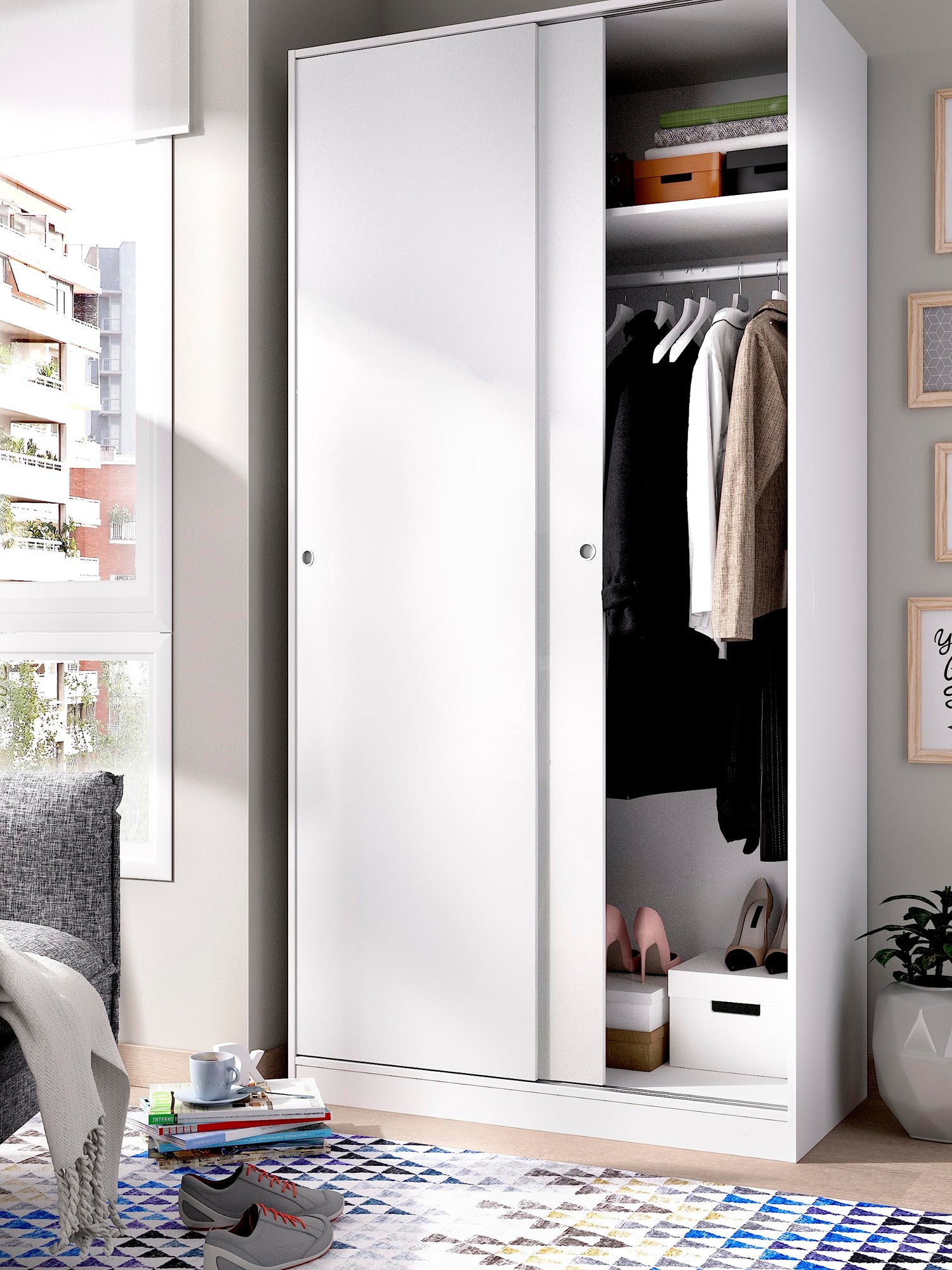 DEKIT GRUPO RIMOBEL Armario 2 Puertas correderas, Madera de ingeniería, Blanco Brillo, 100x204x50cm