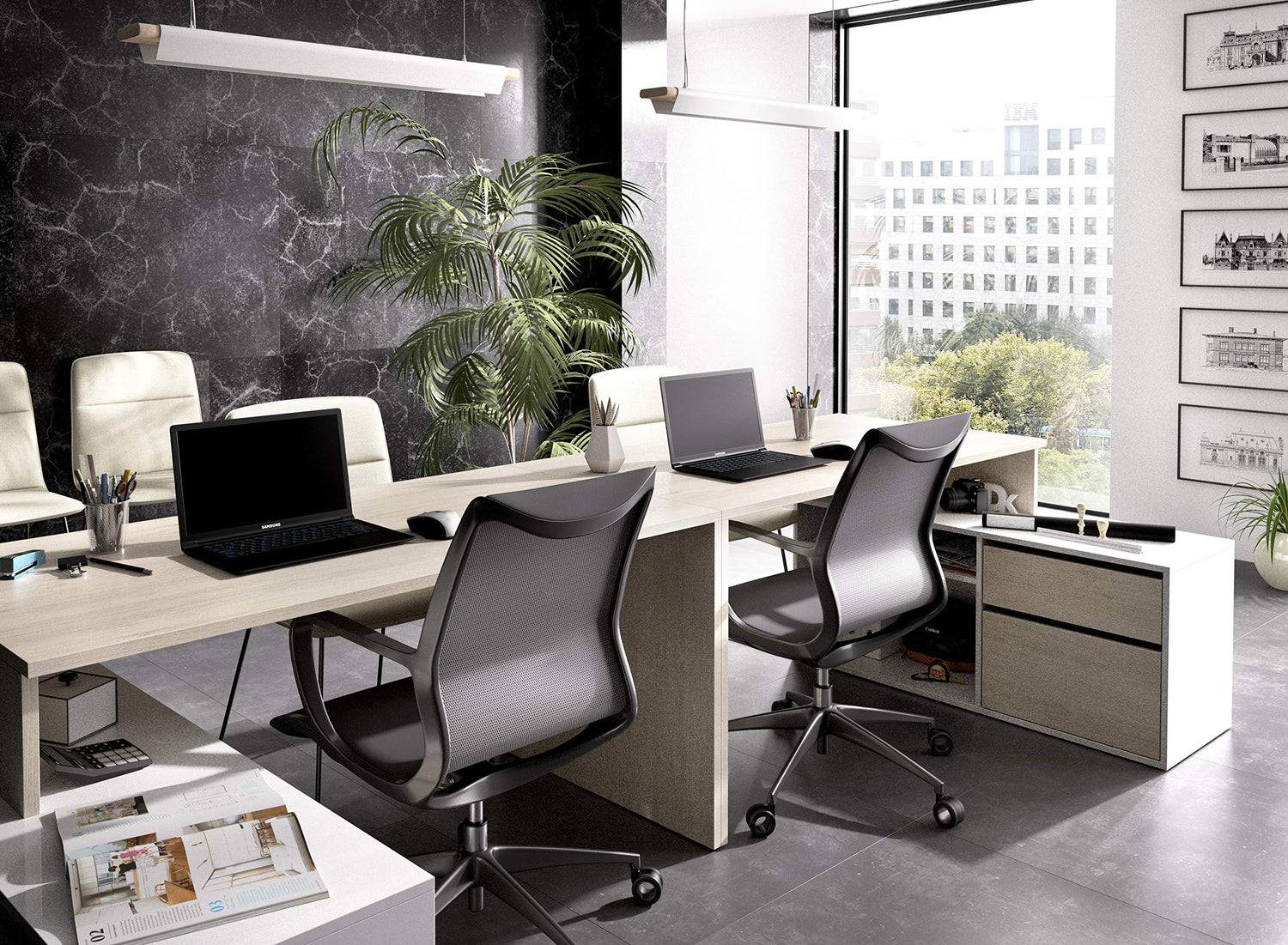 DEKIT GRUPO RIMOBEL ROX - MESA ESCRITORIO CON ALMACENAJE Y DOBLE MONTAJE - 139x75 cm - NATURAL / BLANCO