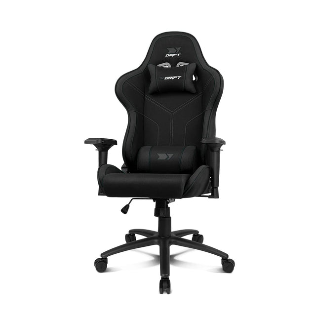 DRIFT GAMING DR110 - Silla Gaming Profesional, Tejido Fabric Alta transpirabilidad, reposabrazos 4D, Ruedas silenciosas, pistón Clase 4, inclinación, cojín Lumbar y Cervical, Color Negro