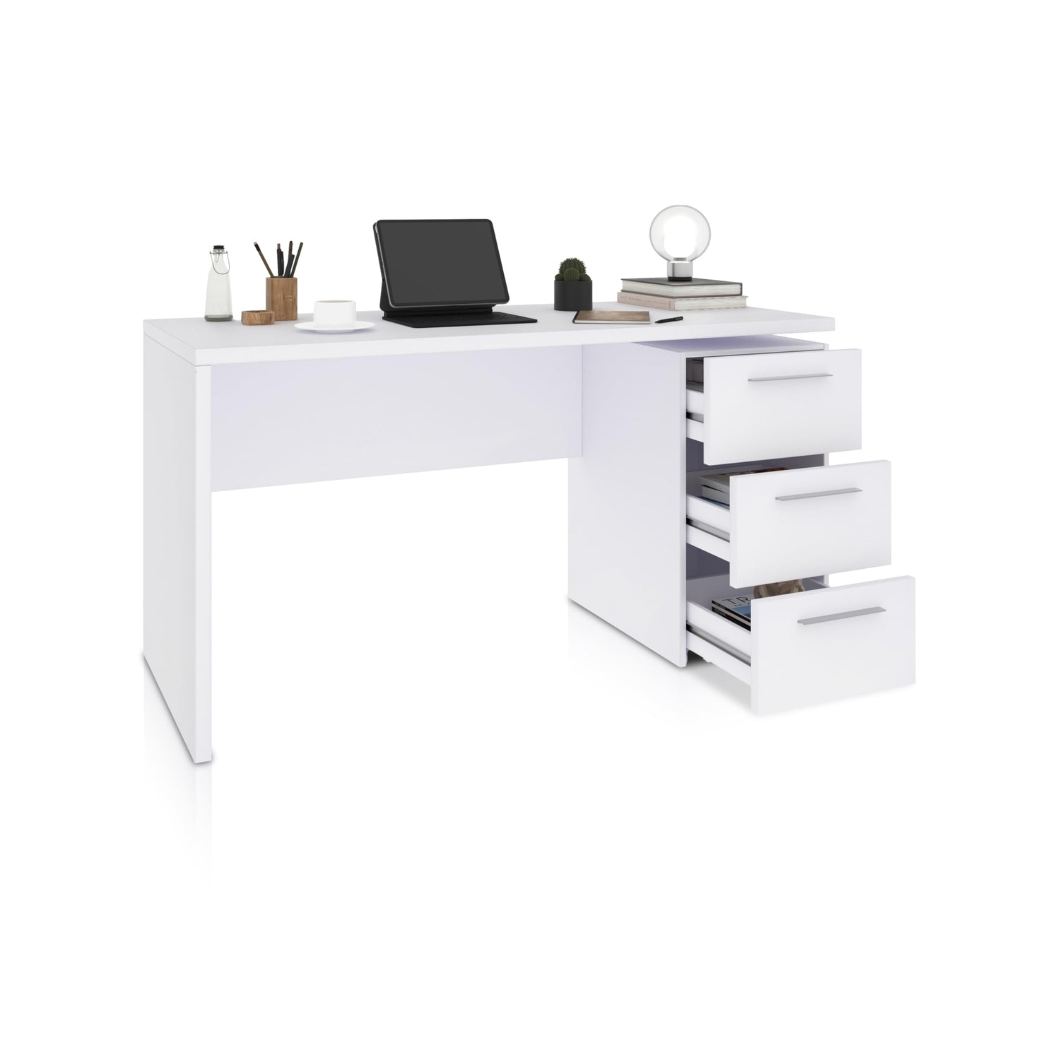 duehome | Mesa de Despacho 3 Cajones, Escritorio, Modelo Sasha, Acabado en Color Blanco Artik, Medidas: 138 (Ancho) x 60 cm (Fondo) x 74 (Alto)