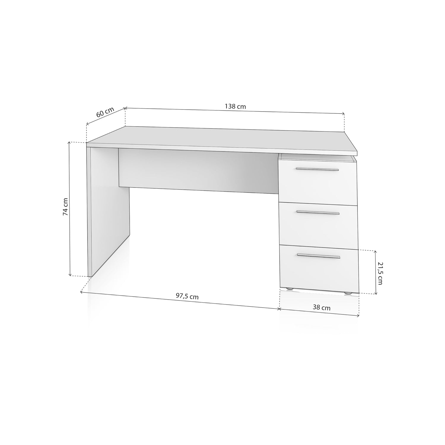 - Medidas de la mesa de despacho Sasha: 138 (Largo) x 60 cm (Ancho) x 74 (Alto).