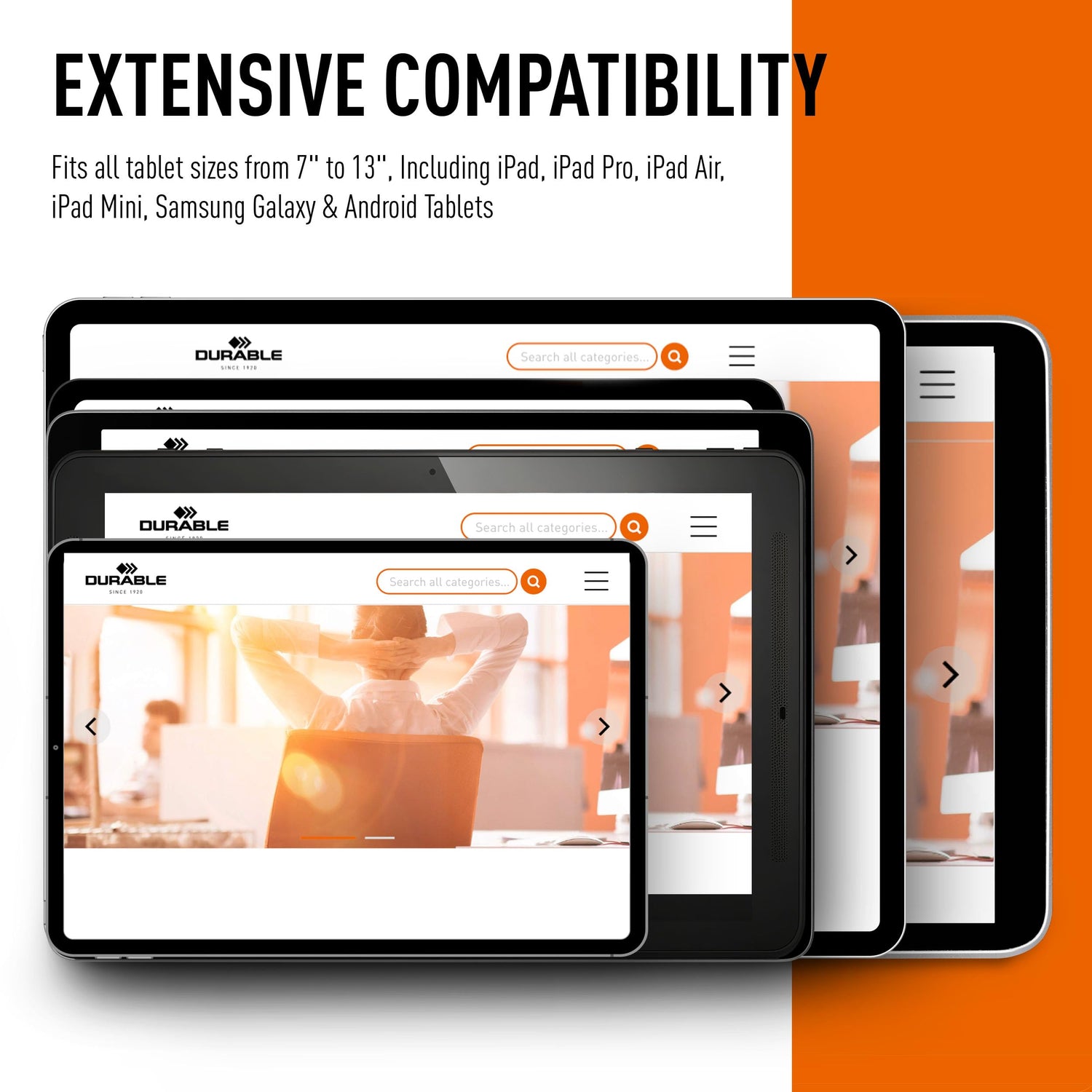 Durable 893323 Soporte de tablet para pared TABLET HOLDER WALL (para tablets de 7-13 pulgadas, giratorio 360° con dispositivo antirrobo) plata/antracita