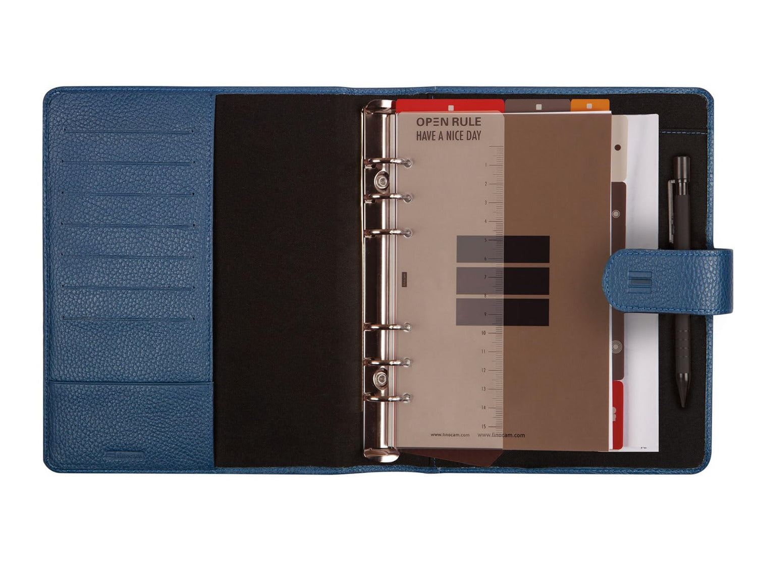 Finocam - Agenda Organizador de Piel 2026 1 Día Página | Enero - Diciembre (12 meses) | Agenda Organizador anillas con bloc de notas | Open Piel Andrea Azul - Español