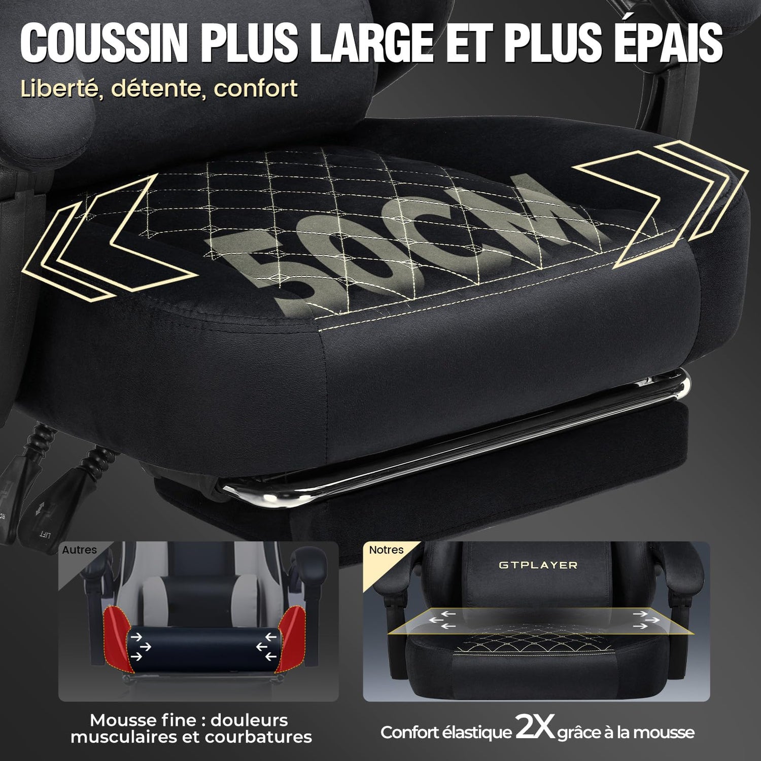 GTPLAYER Silla Gaming Sillón Gaming Tela Silla Gamer Ergonómica Oficina Silla PC, 150 kg, Silla de Mesa Regulable y giratoria con cojín de Asiento con muelles y reposapiés, Negro