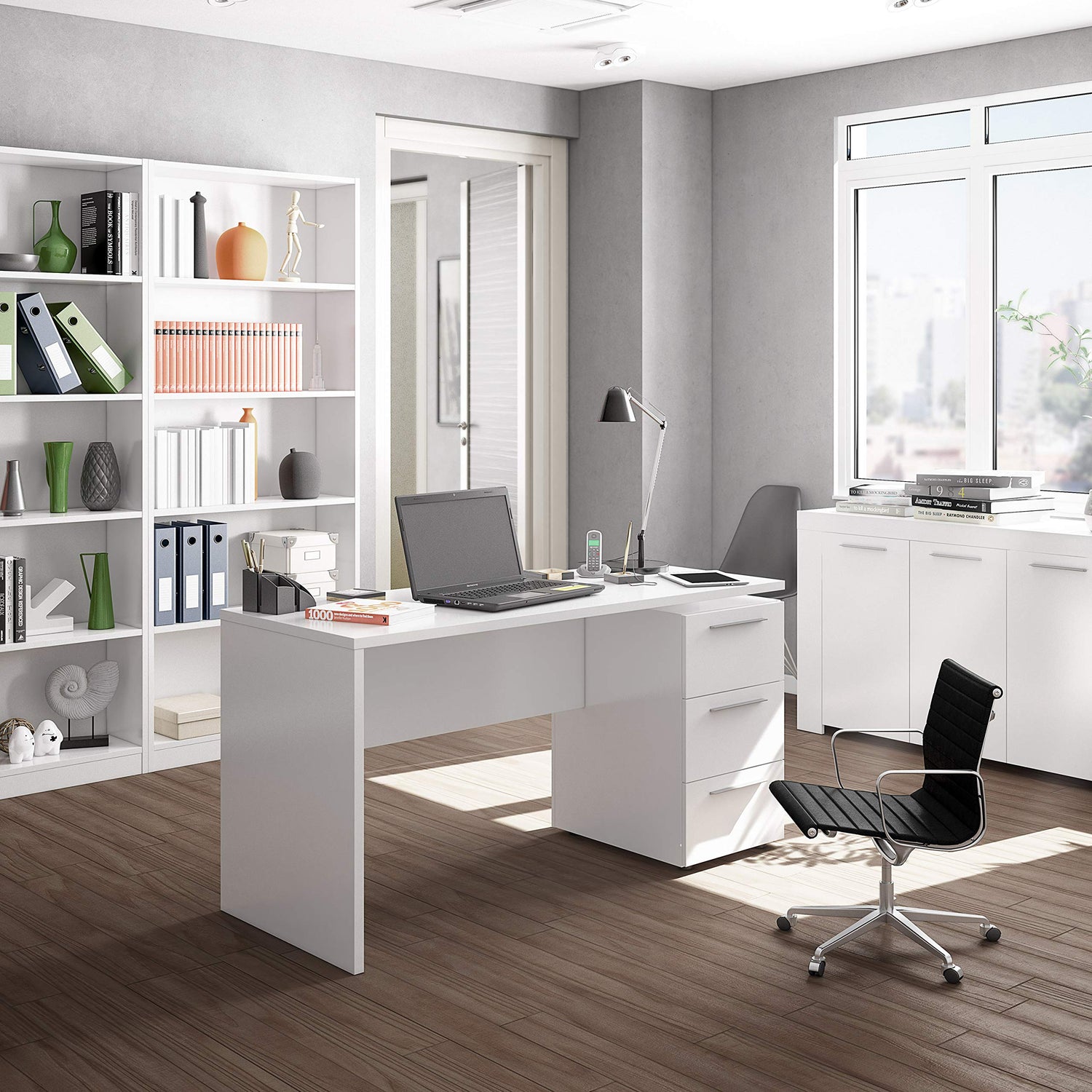 Habitdesign Mesa de Despacho 3 Cajones, Mesa Escritorio, Modelo Stylus, Acabado en Color Blanco Artik, Medidas: 138 (Ancho) x 60 cm (Fondo) x 74 (Alto)